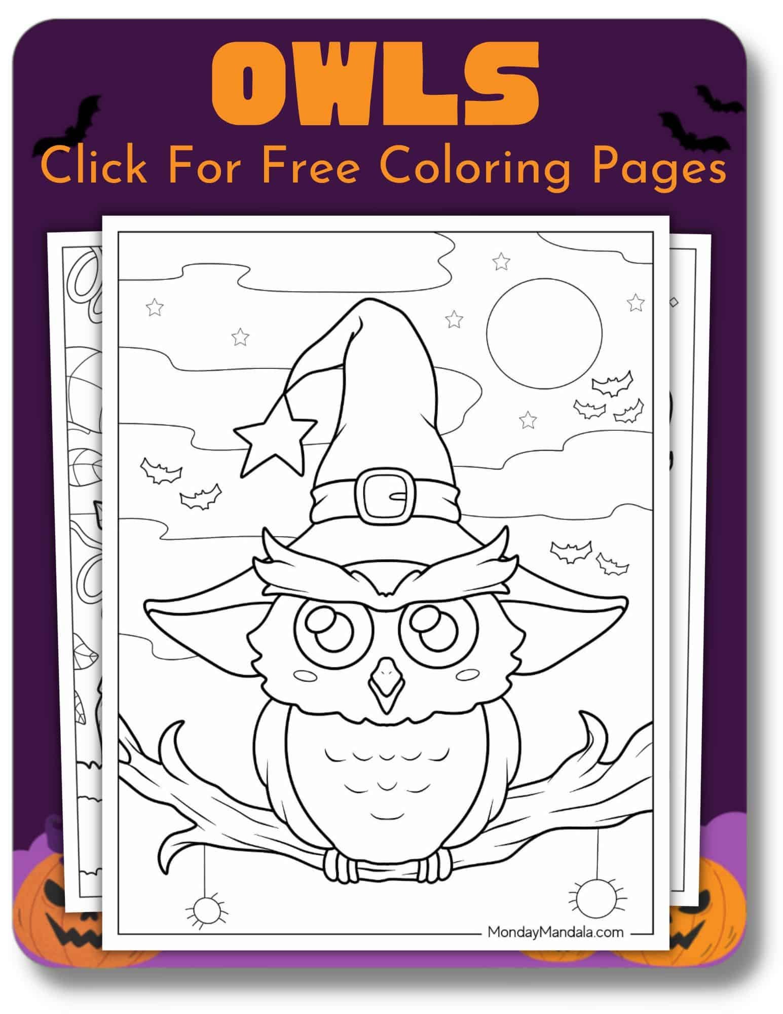 Owl Halloween Coloring Pages (32 Pages)
