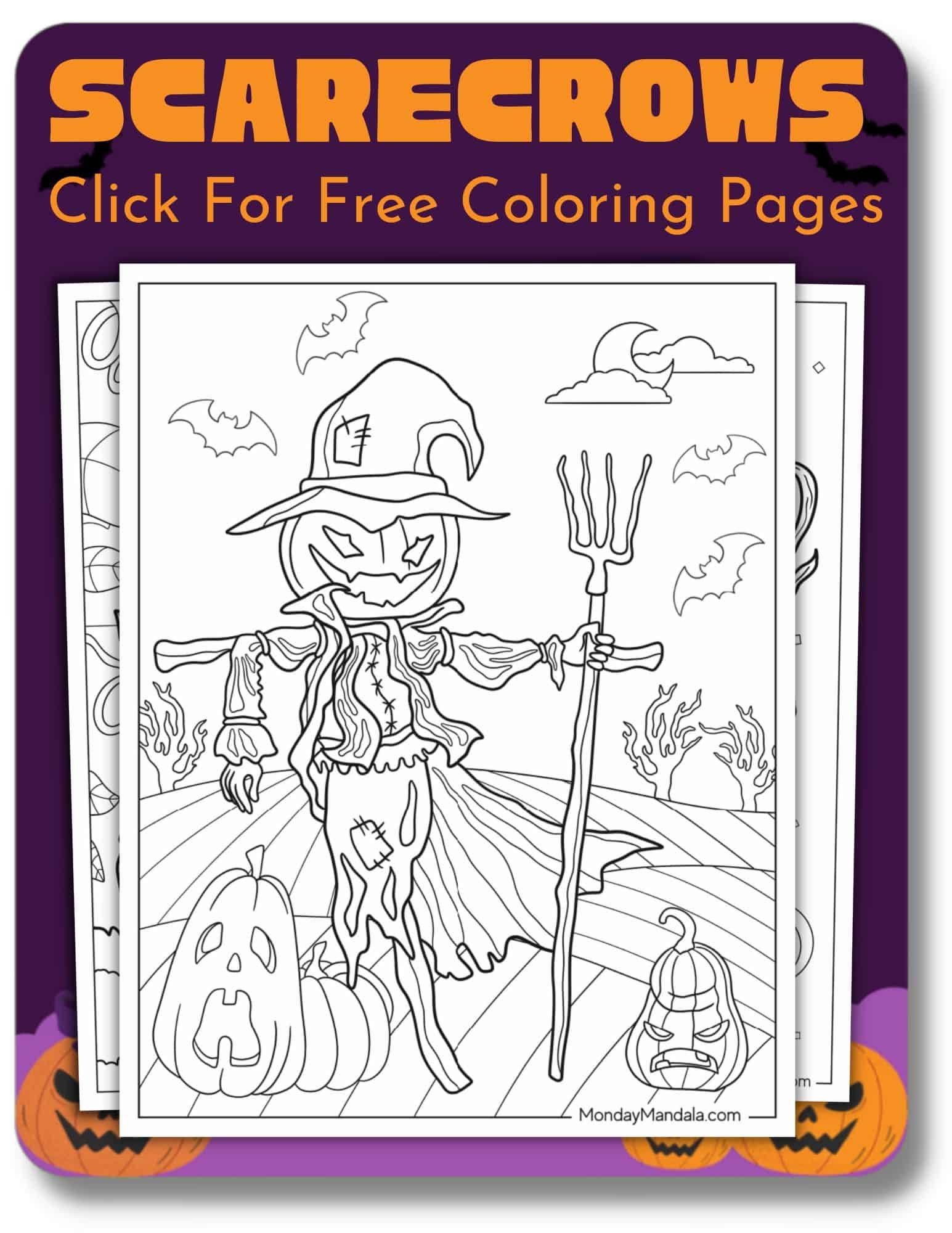 Scarecrow Halloween Coloring Pages (14 Pages)