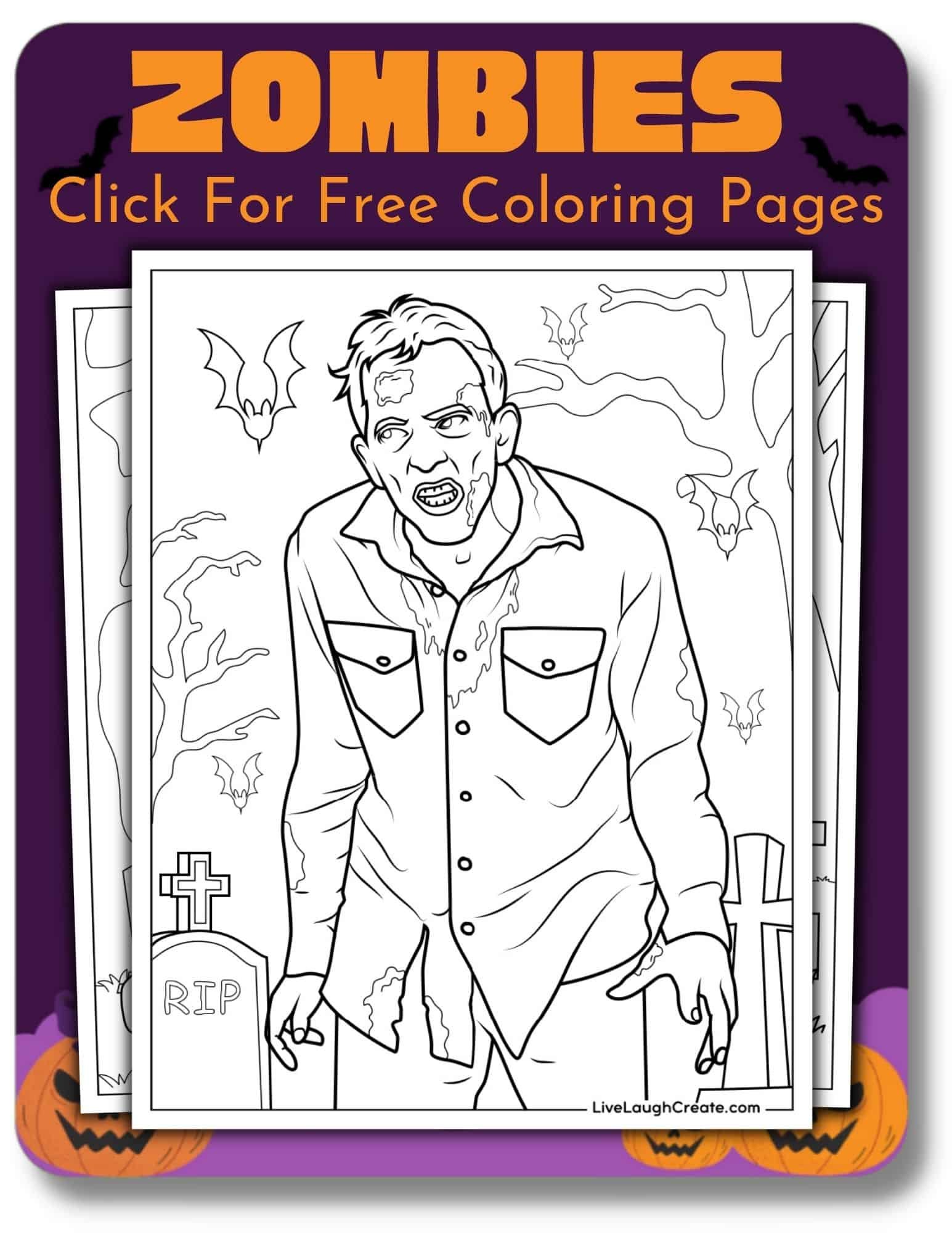 Zombie Halloween Coloring Pages (25 Pages)